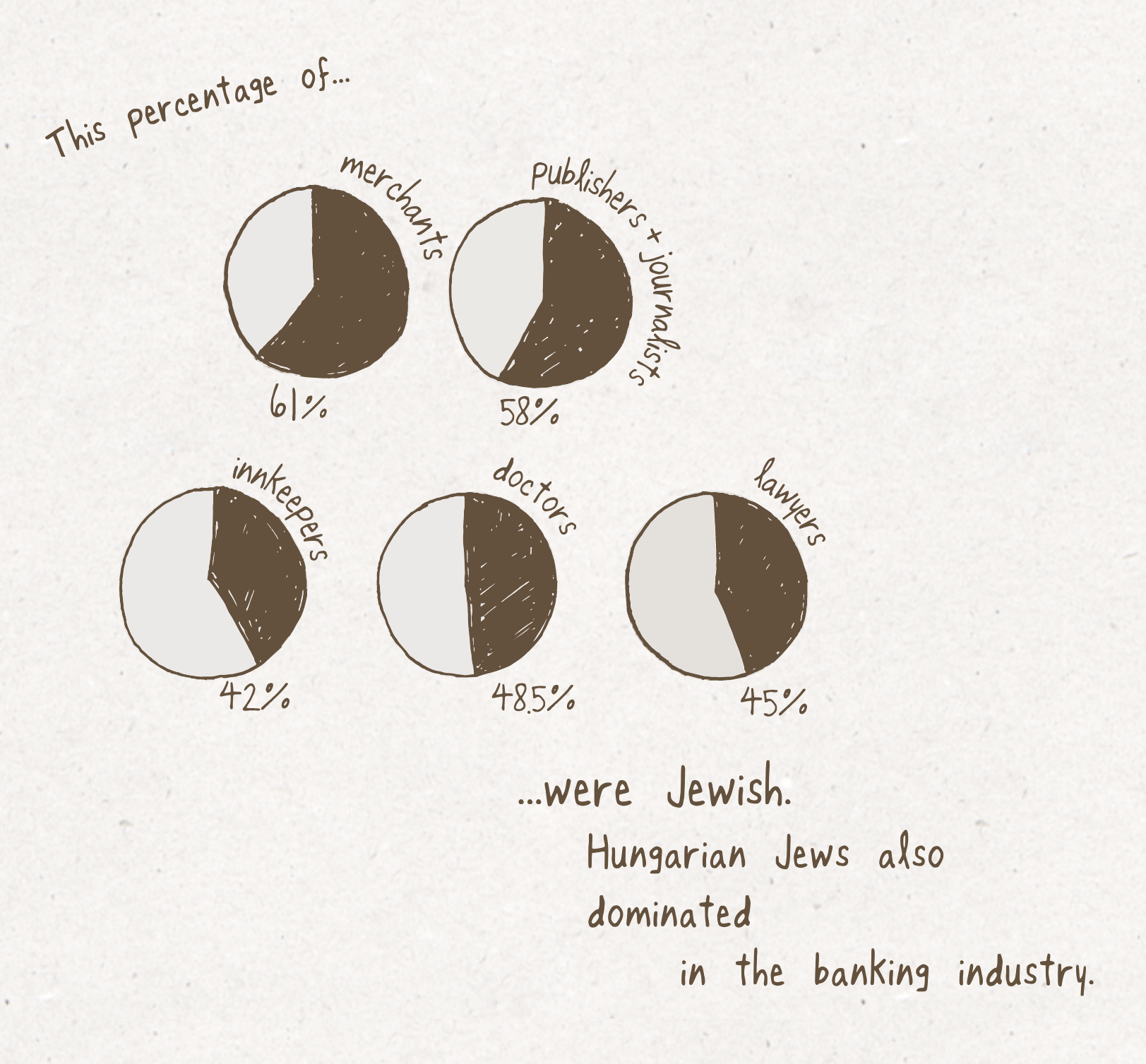 P&T 1900 a pie chart showing the growing population of Jewish professionals in Budapest in the early 1900s, a period of rising antisemitism