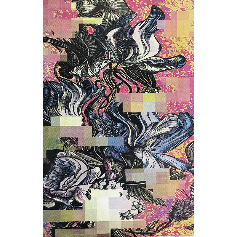 The AI Print Workshop is an exchange portfolio that calls upon artists to collaborate with AI and make a print. The goal of the portfolio is to engage print with AI expansively and openly. The works must engage a question of theory or material significance between AI and print. AI generated material (text, imagery, or video) must be used is some way but how is determined by the artist.